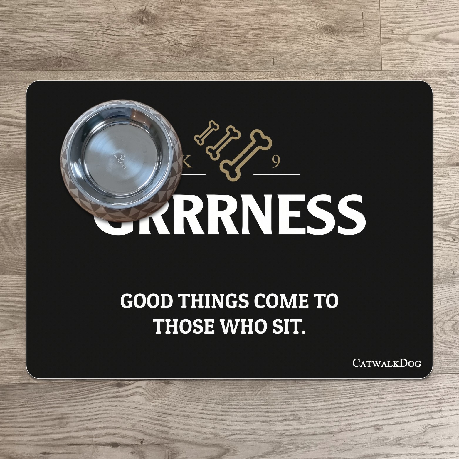 - Fun Design: The Grrrness Feeding Mat features a fun and playful design that is sure to bring a smile to your face. The mat is printed with a colorful pattern of dog bones and paw prints, adding a touch of whimsy to your home decor.