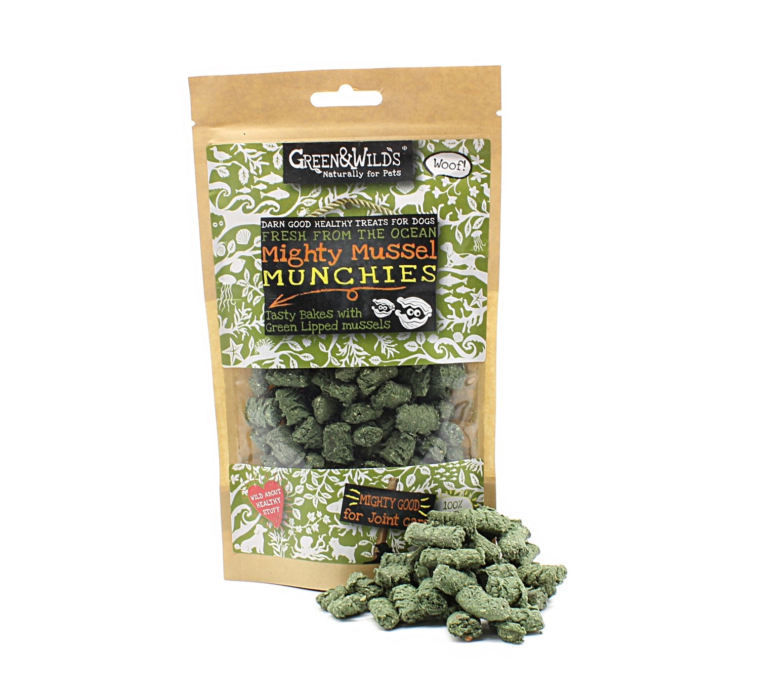 NoMuscle-Building Mussels! Green-lipped mussels, rich in phytonutrients, chondroitin, and glucosamine, make our Mighty Mussel Munchies ideal for dogs with joint issues. These treats boost immunity, gut health, skin, coat, eyes, nerves, and muscles. Low in fat, grain-free, gluten-free, and without sweeteners, colours, or preservatives. A healthy treat for dogs over 3 months.
