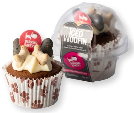 The Barking Bakery Vanilla Iced Vanilla Woofin will delight your dog. This delicious treat is handcrafted and baked with premium ingredients. Vanilla sponge with yoghurt icing and a bone-shaped biscuit will delight your furry friend.